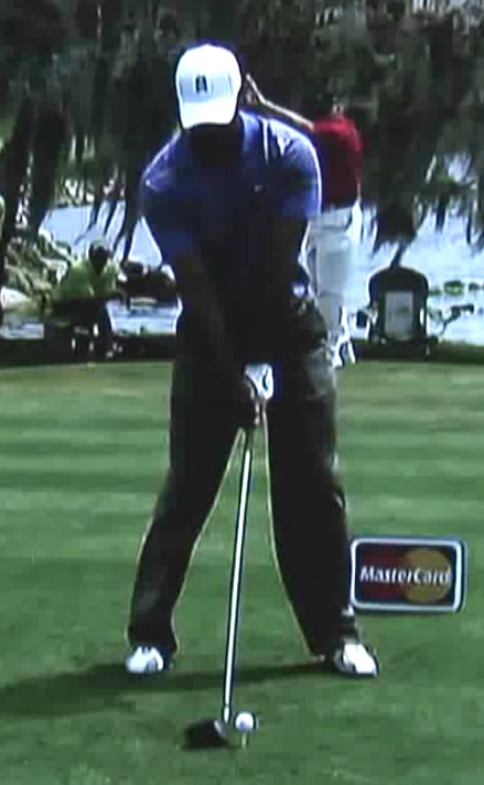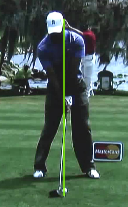 In the image at the top of the article, you probably noticed that Tiger appears to have the ball very far back in his stance.