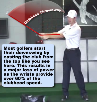 casting golf club and losing lag in golf swingMost golfers cast the club at the start of the downswing and look like this. This swing drill will teach you how to avoid clubhead throwaway and maintain your lag.