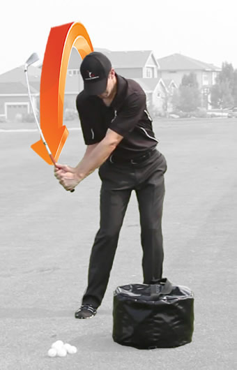 • Set an impact bag two feet behind the ball, slightly inside the target line then take small shots, making sure not to clip the impact bag