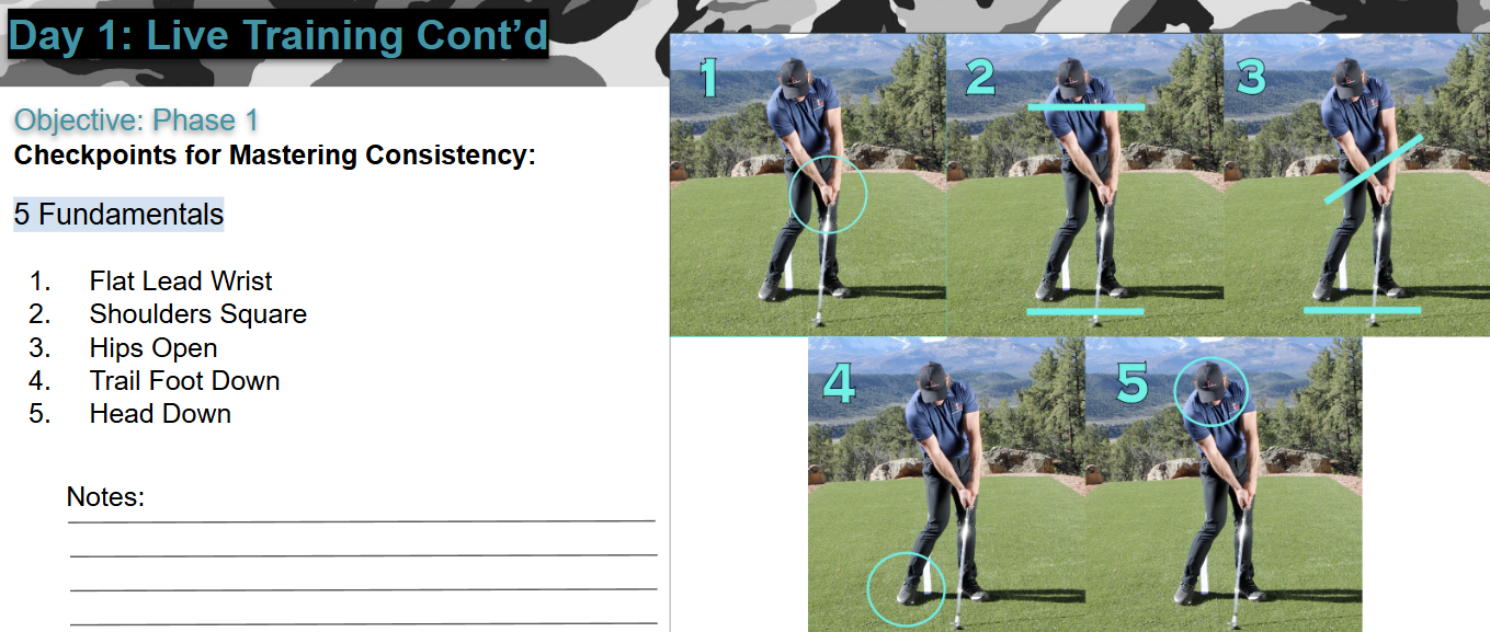 There are five fundamental checkpoints in phase one that will teach you exactly how to hit the ball perfectly straight every single time.