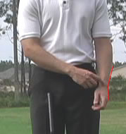 To start learning a proper golf grip, stand with your hands down at your side and note how when completely relaxed, your hands will have a slight cupping at the wrist joing. This is a natural position for the wrist to sit in and is something that should be maintained throughout the process of learning how to take your grip.