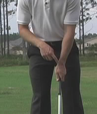 Then the big thing is, just make sure that both hands are on the club equally. A lot of times I see that golfers who come to lessons have their left hand on the club pretty tight, and the left hand looks like this. I know they're not going to be able to do anything with the right side of their body if the right hand is not on the club.