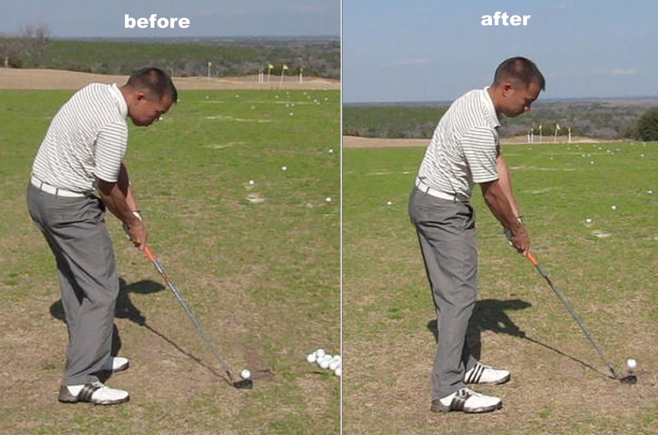 BEFORE: Here are some results after our first week on fixing his stuck, flippy position at impact to produce a ball flight that is literally half as high as before and is now far more penetrating.